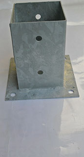 Stützenschuh mit Aufschraublasche: sinnvoll, wenn ein Zaun auf einer Betonfläche oder einem breiteren Mauersims aufgeschraubt werden soll. Für mäßig belastbare Konstruktionen geeignet.